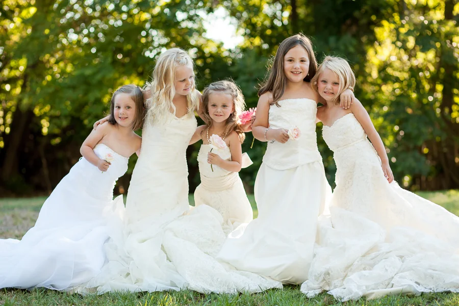 I can't wipe the smile off my face sorting through the many photos of our laughing, giggling JOY filled girls dancing around in our dresses. And full disclosure...they were at the very least just as radiant if not more than we were on our actual wedding days.